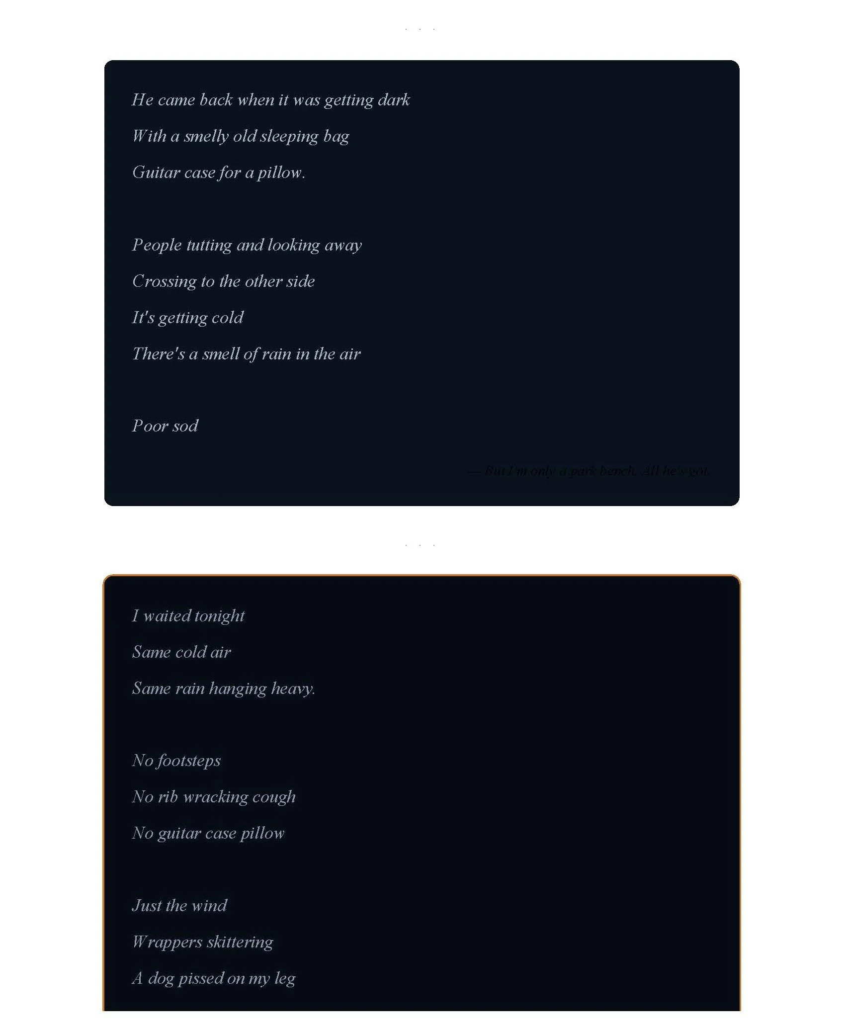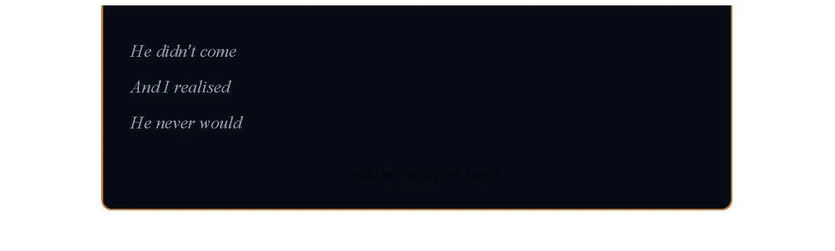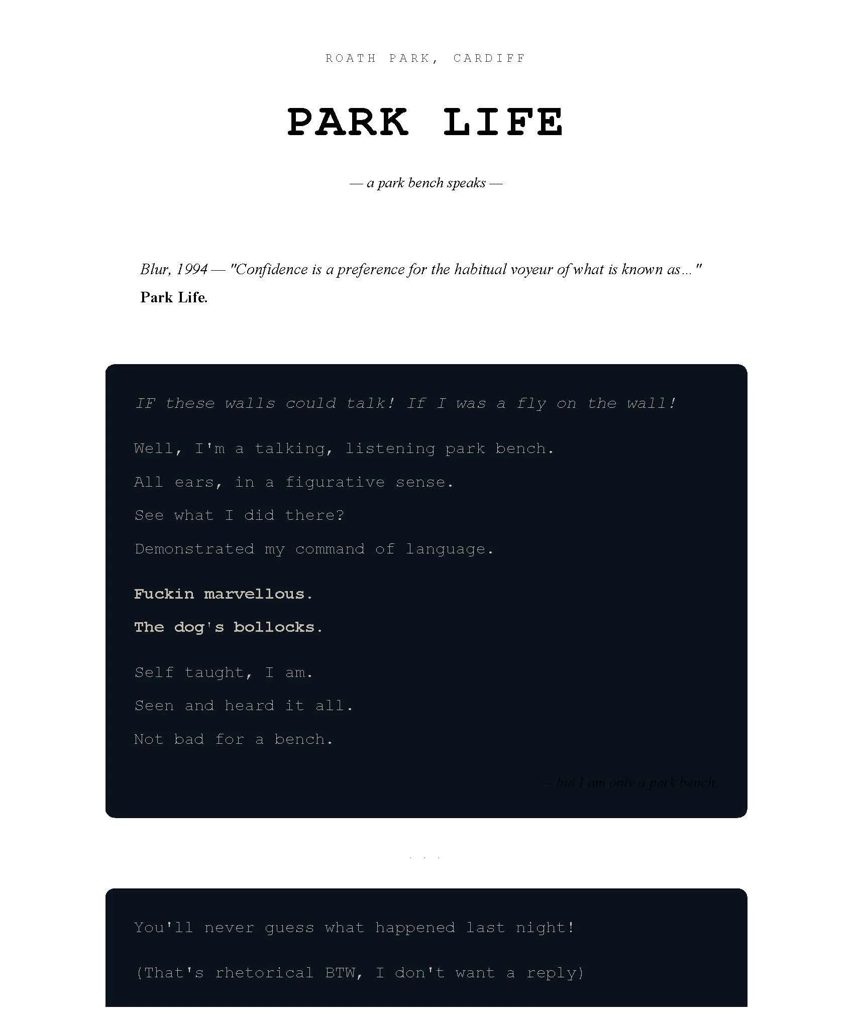 Parklife Photo by C Chiba on Unsplash Written by Keith Butler Student WritingFalWriting TeamMarch 23, 2026short story Facebook0 Twitter Pinterest0 0 Likes
