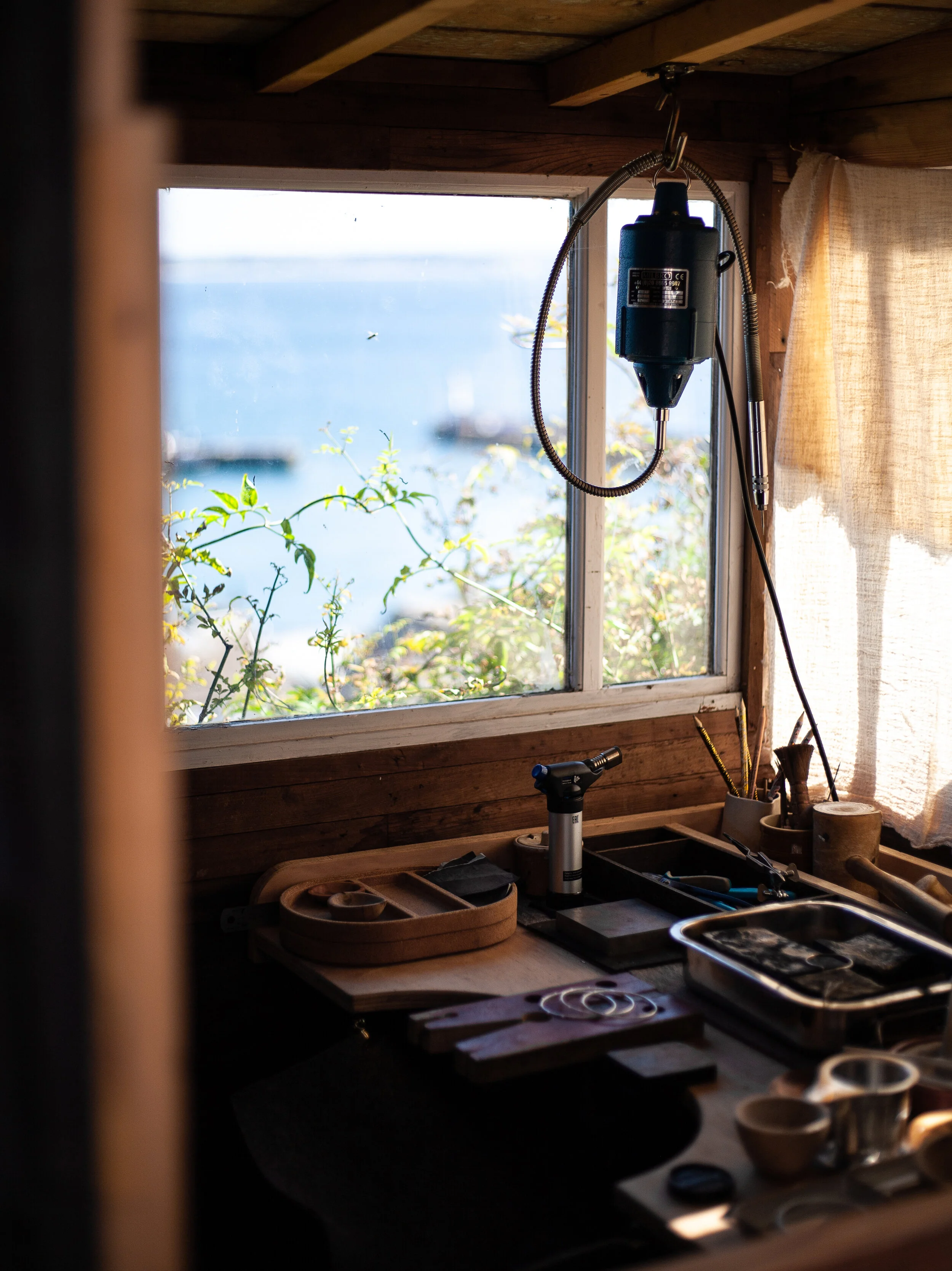 It wasn’t until I started to make silver jewellery, and needed somewhere to explore my craft, that we transformed the bike shed into the studio I had lusted after. In piles of firewood offered for free, my dad found Canadian cedar shingles, cedar panels, and long lengths of old pitch pine. We scrounged offcuts of insulation, filled the room with tools and trinkets, and it became my place to make, to write, to think.